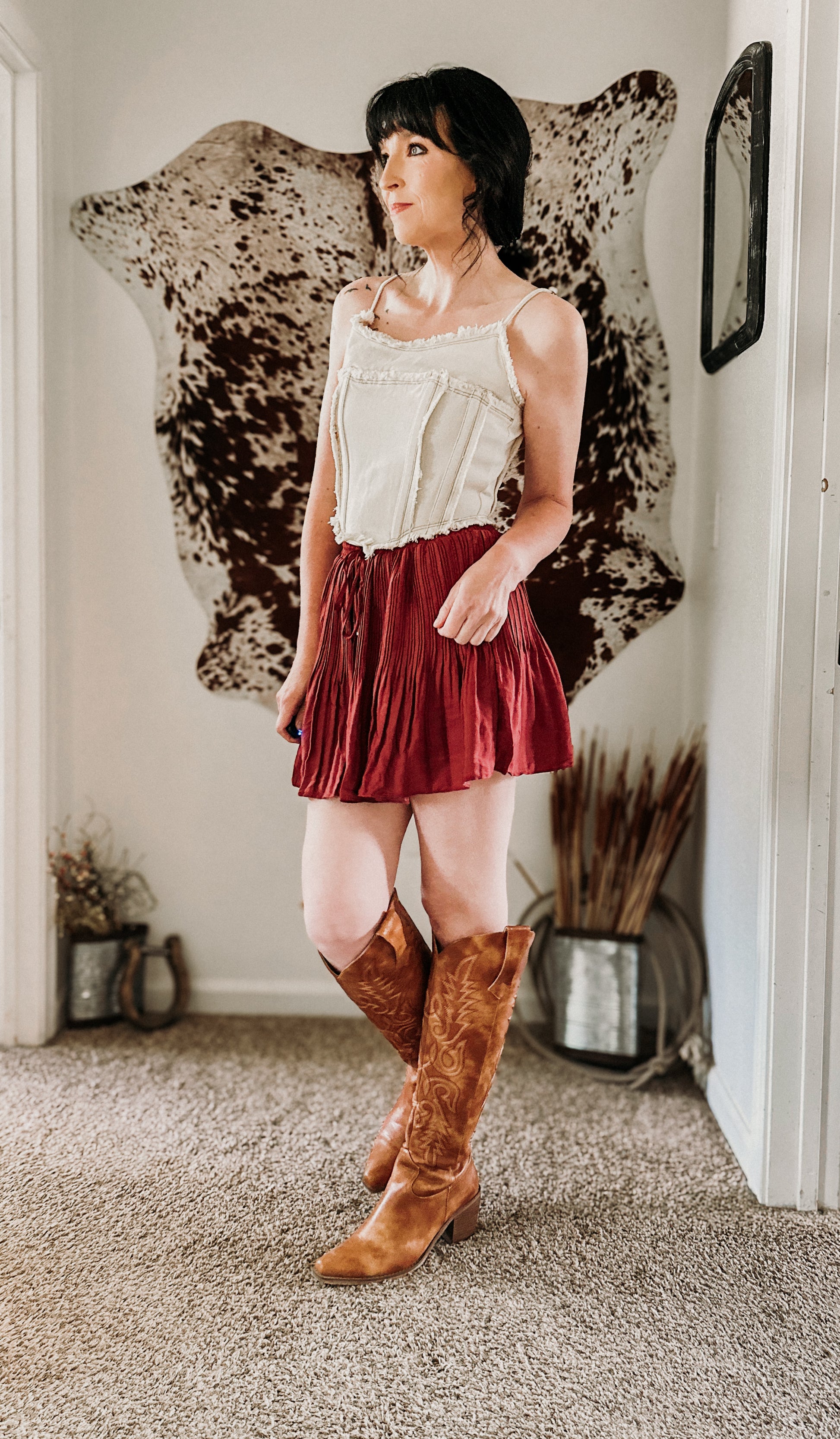 Sweet with a little sting—the Bandit Berry Skort is bold, berry-colored, and ready to stir up trouble. Designed with pleated softness, a comfy drawstring waist, and an easy pull-on fit, this mini skort gives just the right mix of pretty and punchy. Whether you're two-steppin’ or slow sippin’, she’s gonna keep up.