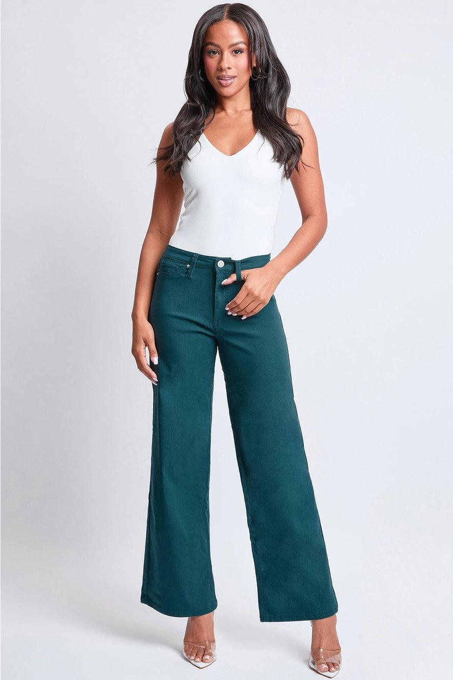 The high-rise waist cinches you in just right, while the full-length wide leg gives you that long, lean silhouette. And thanks to improved color fastness, this vibrant teal shade stays bold and beautiful through every wash.