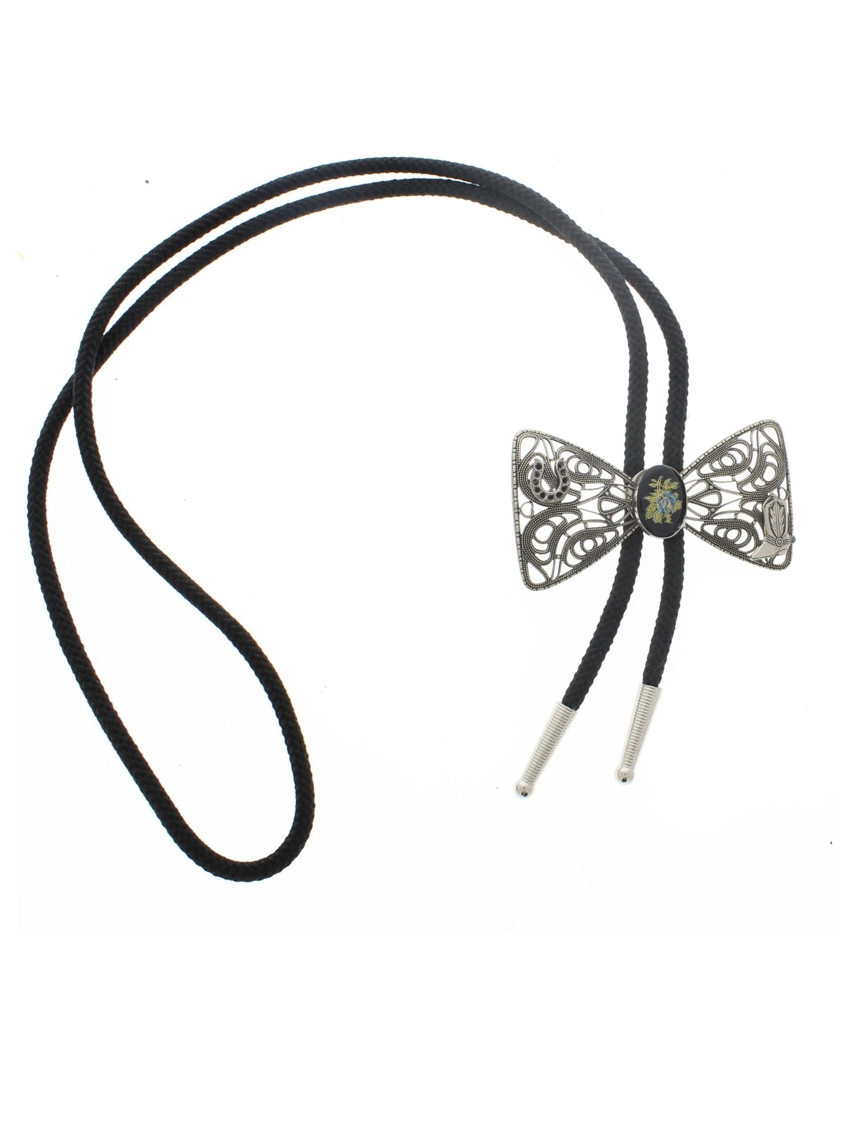 Where vintage romance meets western whimsy—The Bluebelle Bolo is a true boutique statement piece. Made in the USA, this bolo features a delicate silver filigree bow, accented with a tiny cowboy boot, horseshoe charm, and a pop of blue from a rose cabochon centerpiece.