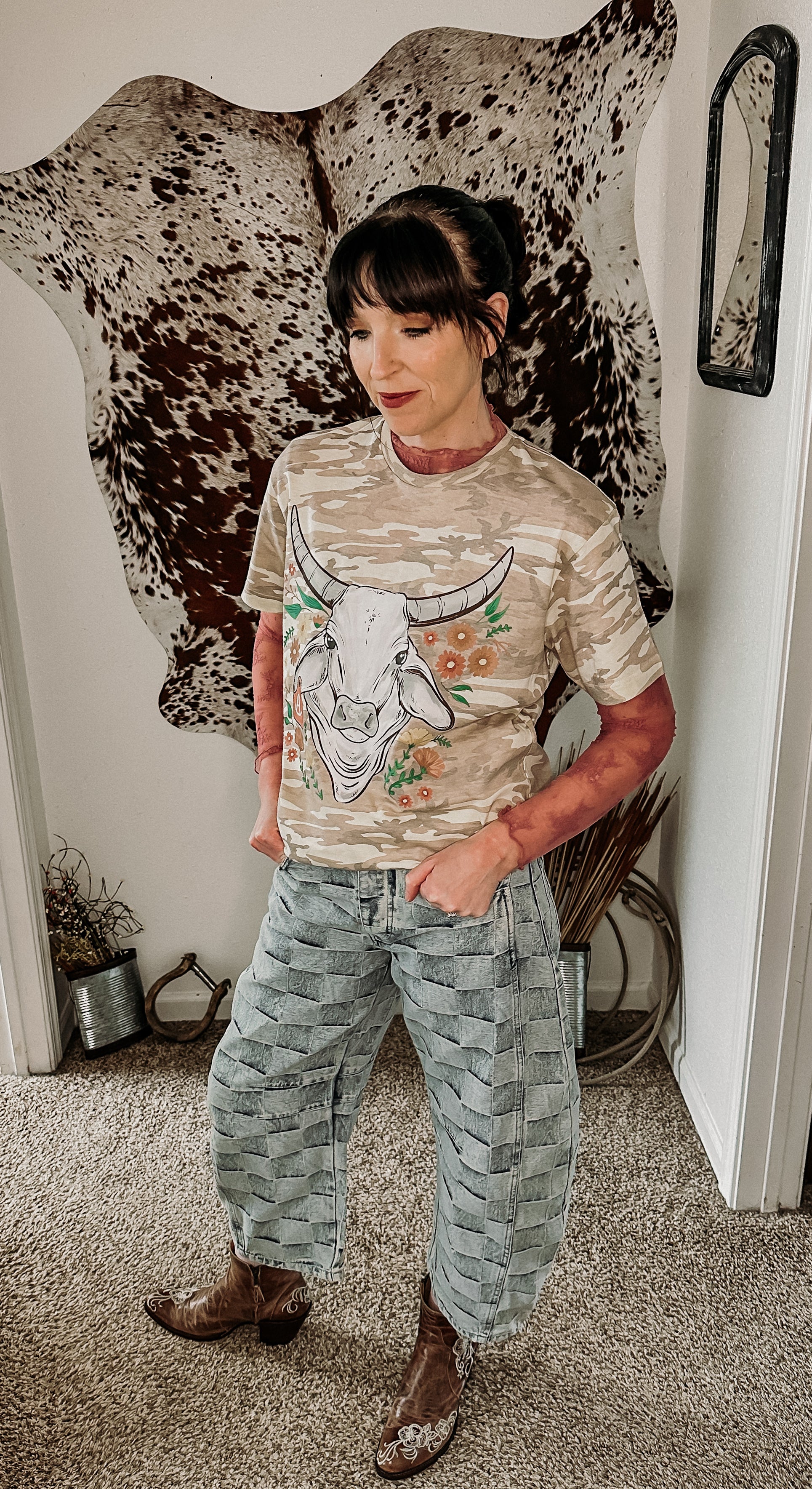 Let’s get one thing straight—these jeans aren’t here to play it safe. The Check Her Out Barrel Jeans are the kind of statement piece your closet’s been craving. Designed with a mineral-washed finish and bold, one-of-a-kind checkered patchwork, they bring that edgy-meets-western vibe with a modern twist.