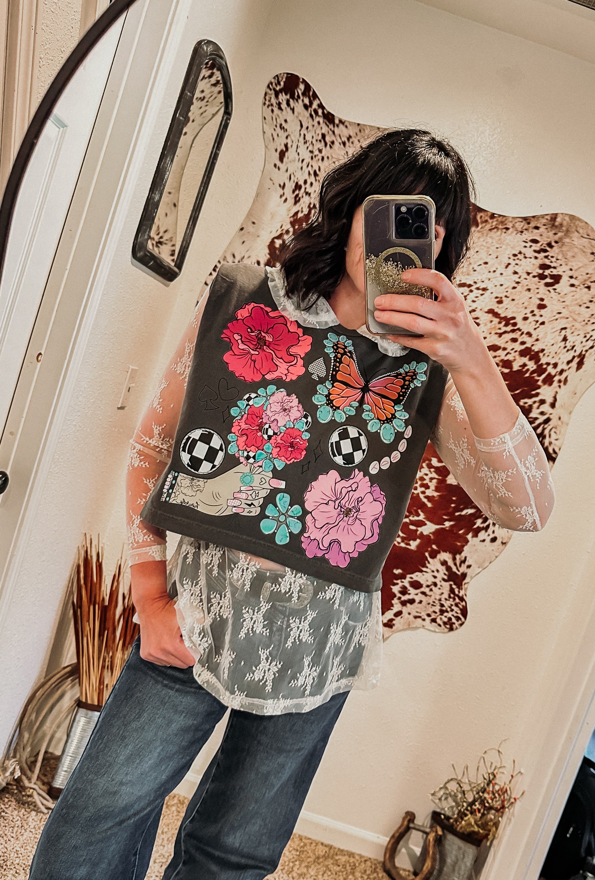 Slip it under a graphic tee, wear it under a vest, or let it peek out under a dress — either way, it’s adding that extra touch of cowgirl charm.
