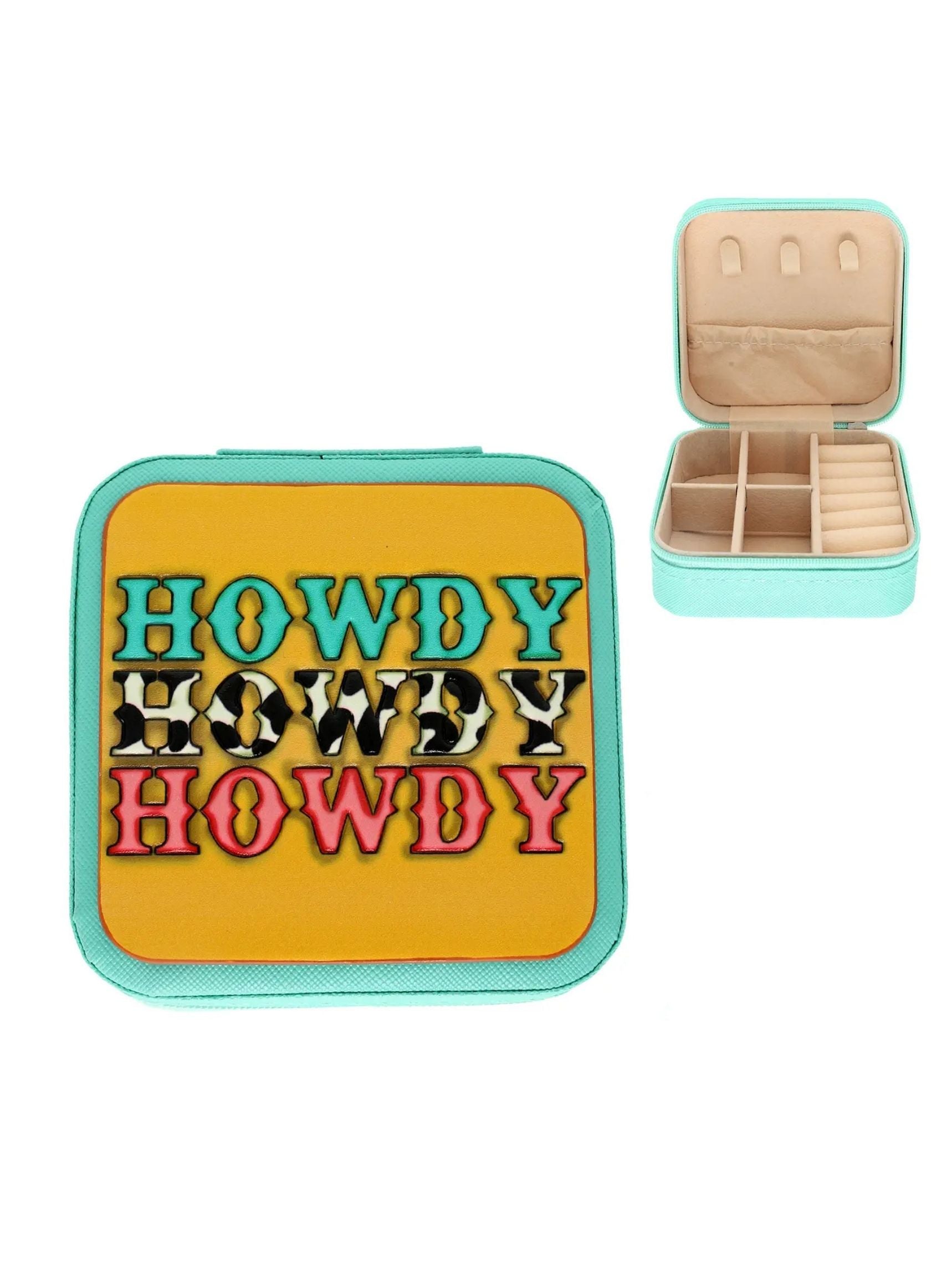 Say howdy to the Howdy Hideaway Box, a charming travel-sized accessory for any cowgirl’s collection. Crafted from genuine leather with a beautiful western "Howdy" tooling design, this jewelry box ensures your treasures stay safe while on the move. With its rustic, western charm, this box is a perfect blend of function and style.