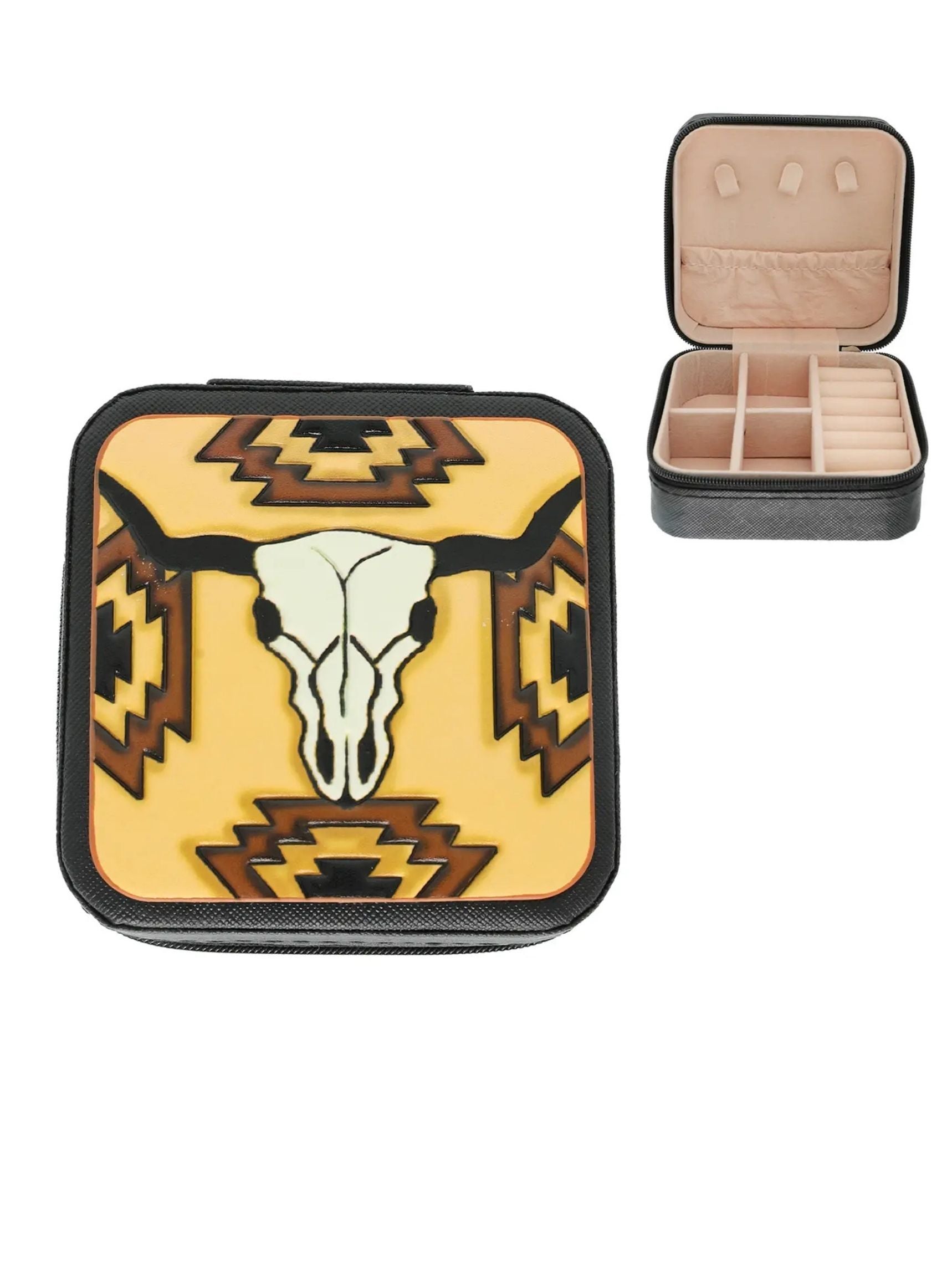 Show off your western spirit with the Longhorn Hideaway Box. Crafted from high-quality leather, this travel-sized jewelry box features a beautifully detailed steer head tooling design. Perfect for organizing your jewelry, it’s a must-have for any cowgirl looking to add a touch of rustic charm to her accessory collection.