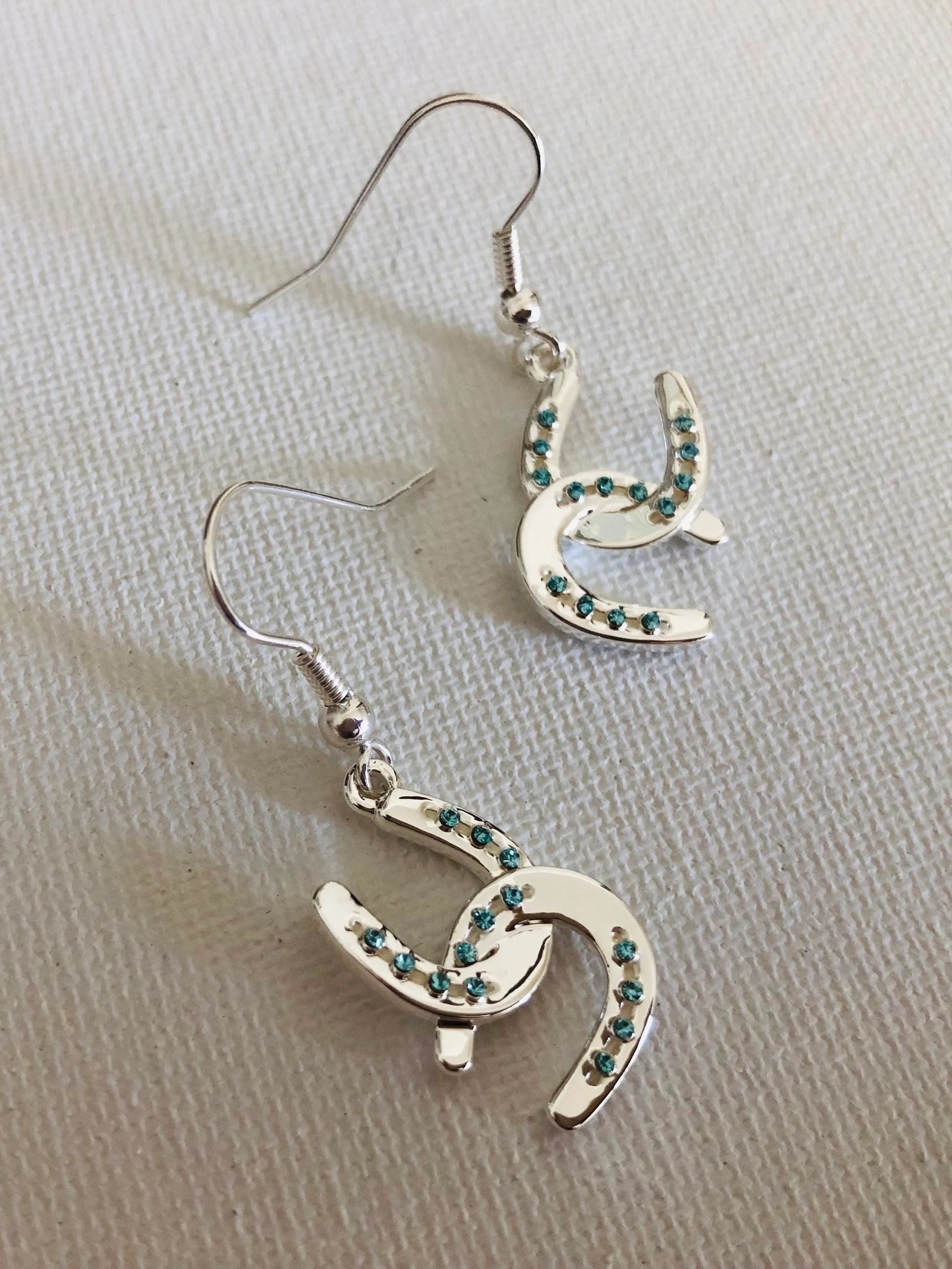 Bring a little sparkle and a whole lot of charm to your look with The Lucky Trails Drops—dainty silver-tone horseshoes accented with aqua crystals that shimmer with every step. These lightweight dangle earrings are a graceful nod to equestrian elegance, perfect for horse lovers and western fashionistas alike.