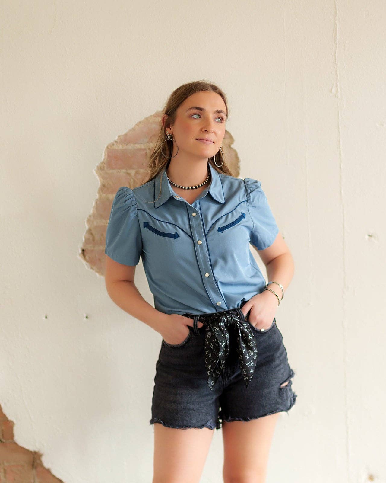 Short sleeve western-style blouse
