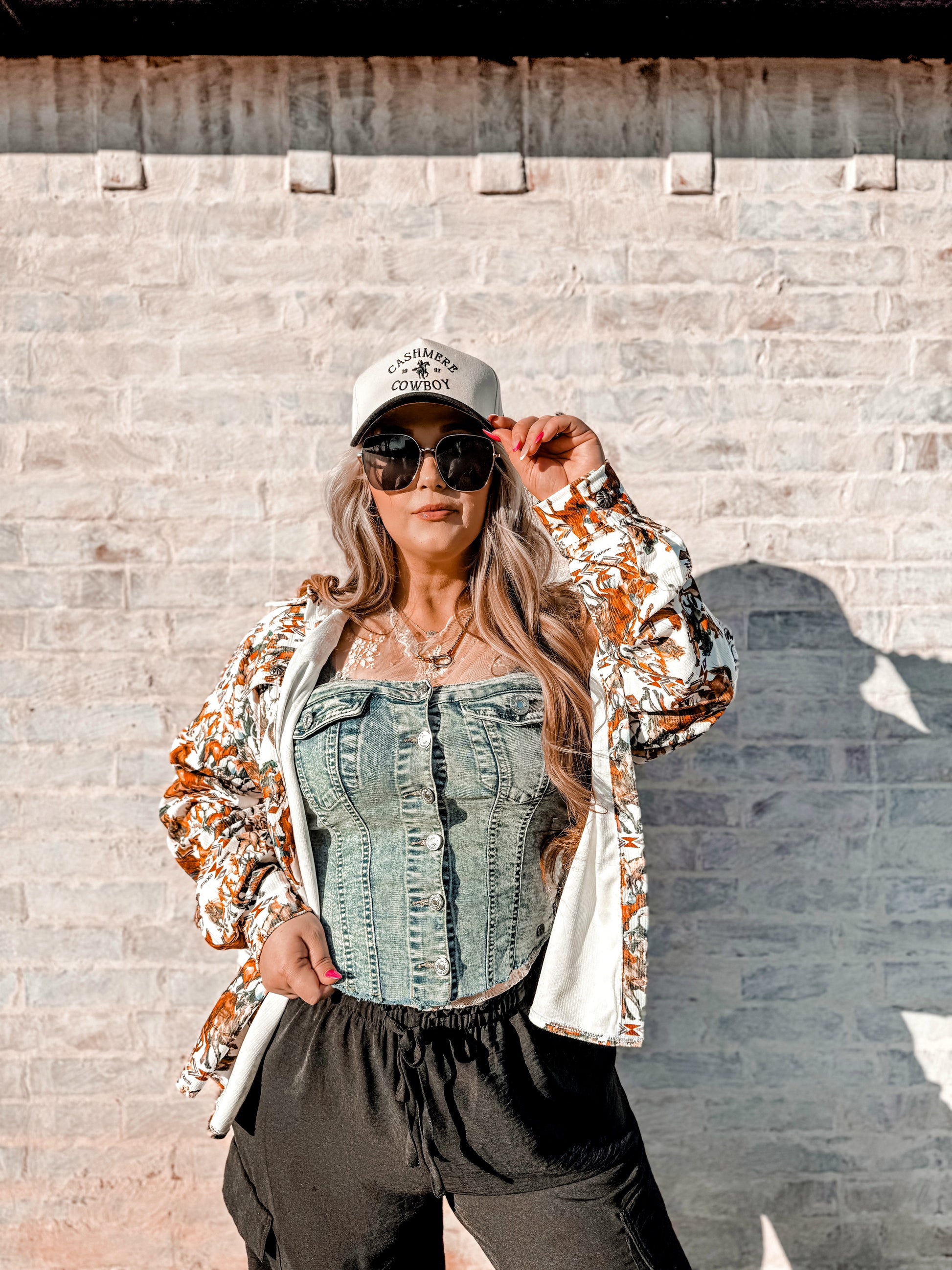 Take the reins in the Rodeo Reign Corset—a denim dream that’s equal parts edgy and effortlessly cool. With its flattering corset-style fit, button-down front, and a touch of stretch, this piece is made to hug your curves and hold attention.