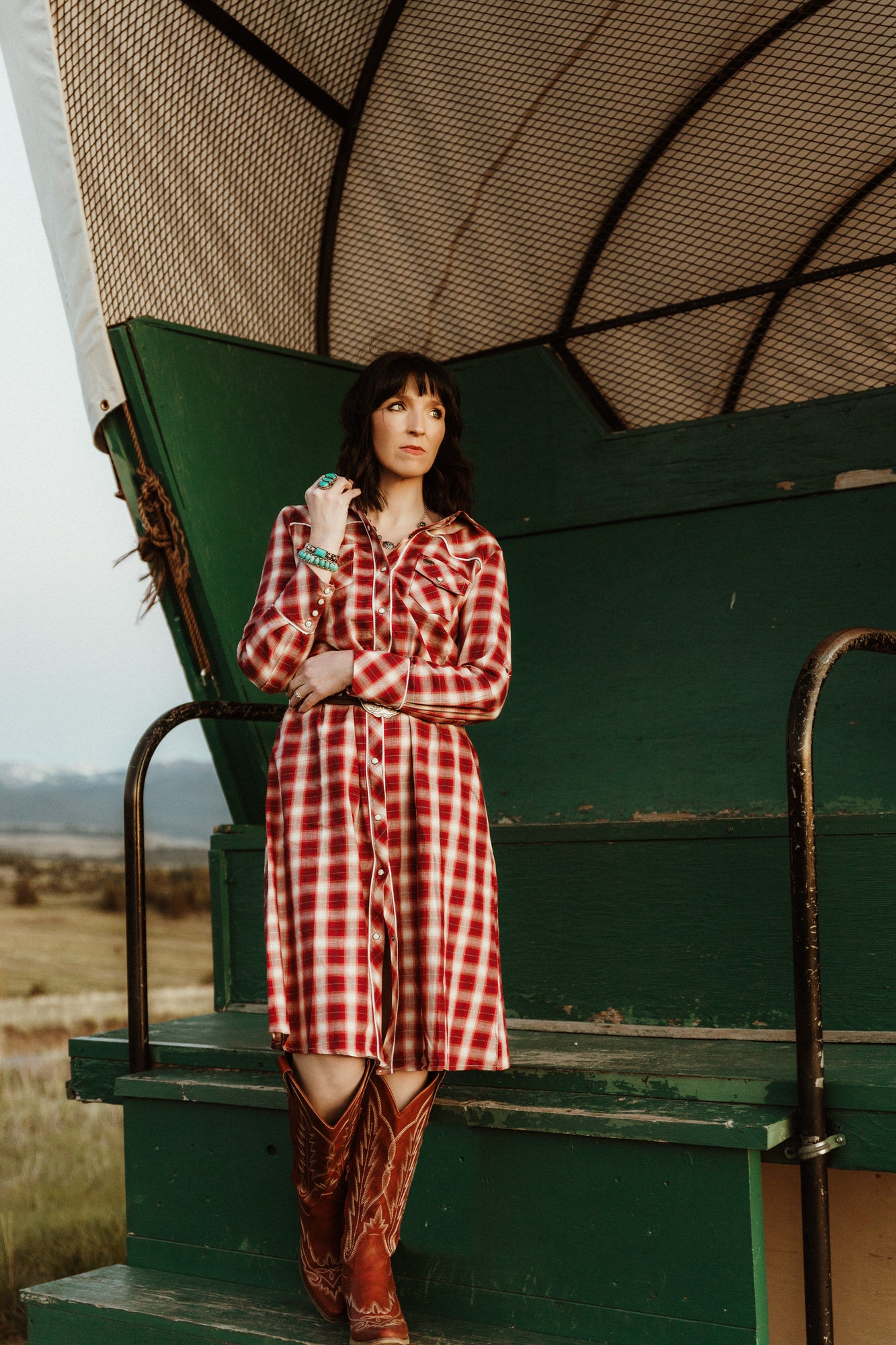 The Rodeo Romance Dress is the Western shirt dress your fall wardrobe has been dreamin’ of. With its classic plaid print, pointed yoke detail, and snap button-down front, this long-sleeve beauty channels that rugged cowgirl charm—with just enough structure to keep it chic. Wear it solo with a belt and boots, or layer it open as a duster for a laid-back rodeo-ready vibe.