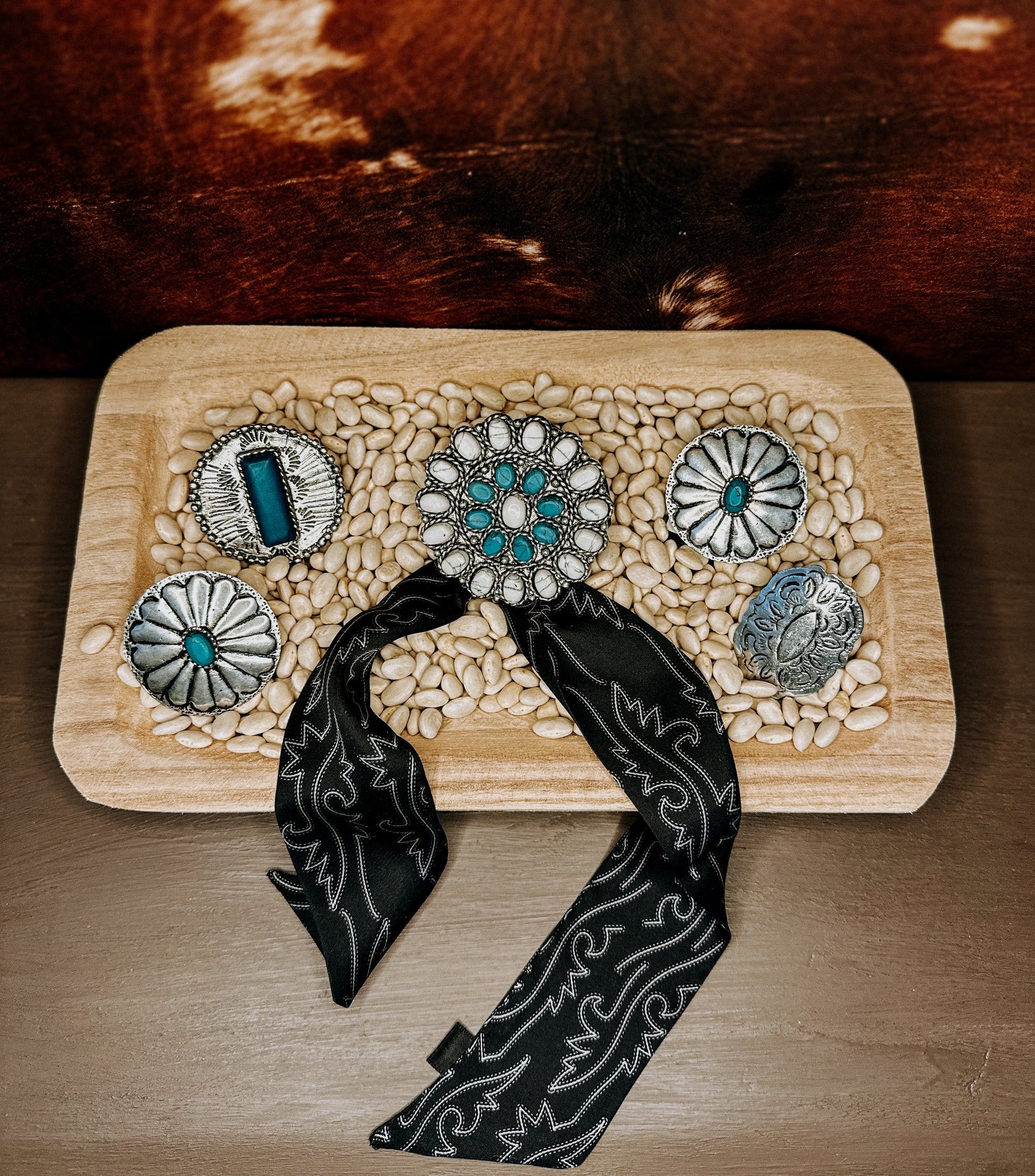 Elevate your western style with The Scarf Slide Collection. These stylish accessories are perfect for adding flair to any outfit. Whether you’re pairing them with wild rags or twilly scarves, these adjustable scarf slides will complete your cowgirl look with ease. Each slide is designed to add a unique touch of western charm while ensuring a perfect fit.