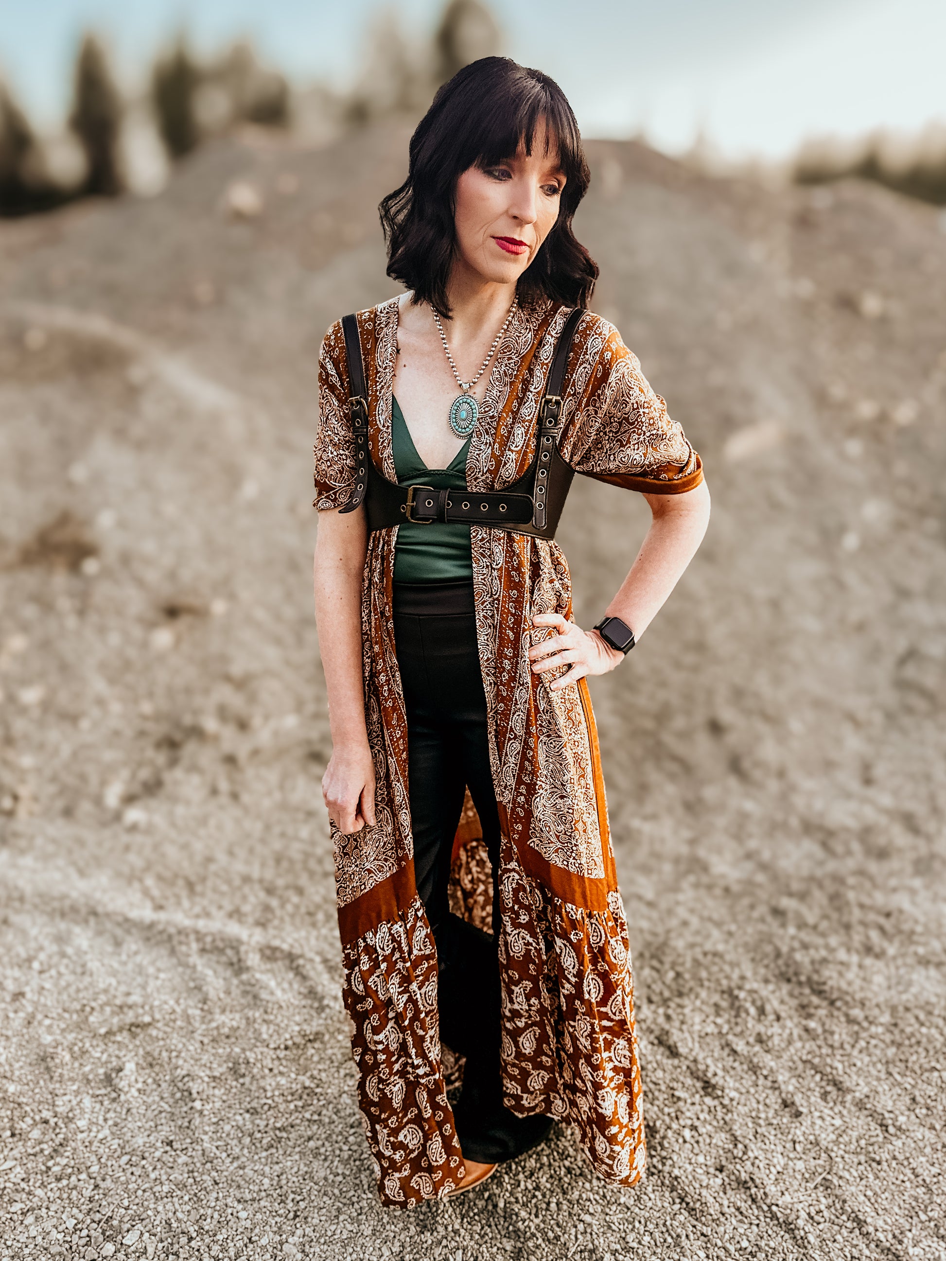 Step into edgy fashion with The Black Spur Harness. Crafted from high-quality faux leather, this bold statement piece is a must-have for the cowgirl who likes to break the rules. With adjustable straps and a statement buckle, it’s the perfect accessory for any outfit that needs a bit of attitude. Wear it as a waist cincher or layer it over your favorite look for a rebellious, punk edge.
