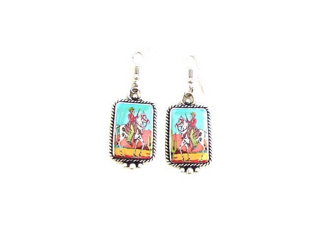 Locked, loaded, and ready to ride — The Quickdraw Dangles bring big western energy in a small, lightweight package. Featuring a desert backdrop with a cowboy on horseback holding a gun, these vintage-style earrings are perfect for the bold and the brave. Retro-inspired with cowgirl edge, they’re the finishing touch your rodeo fit didn’t know it needed.