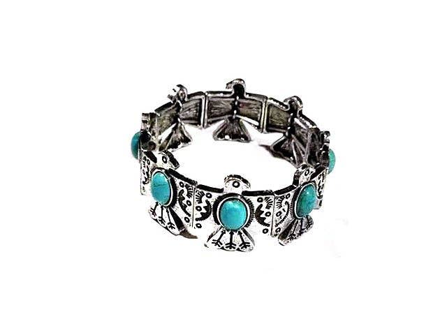 Harness the spirit of the skies with Thunder & Turquoise — a stretch bracelet made for bold souls and wild hearts. Featuring a continuous row of thunderbird charms with turquoise center stones, this piece blends iconic western symbolism with everyday wearability. Stack it or let it shine solo — either way, it’s ready to ride.