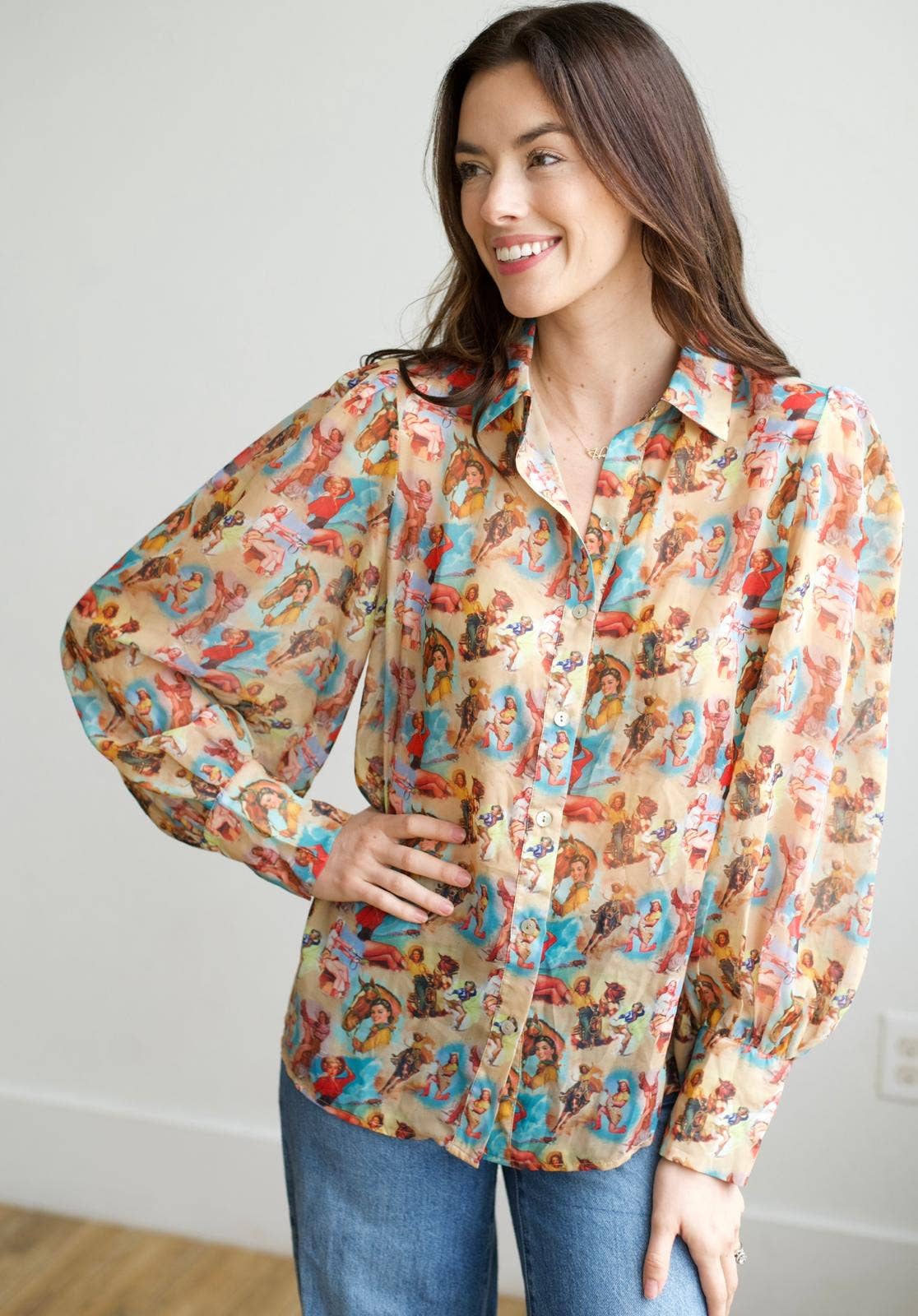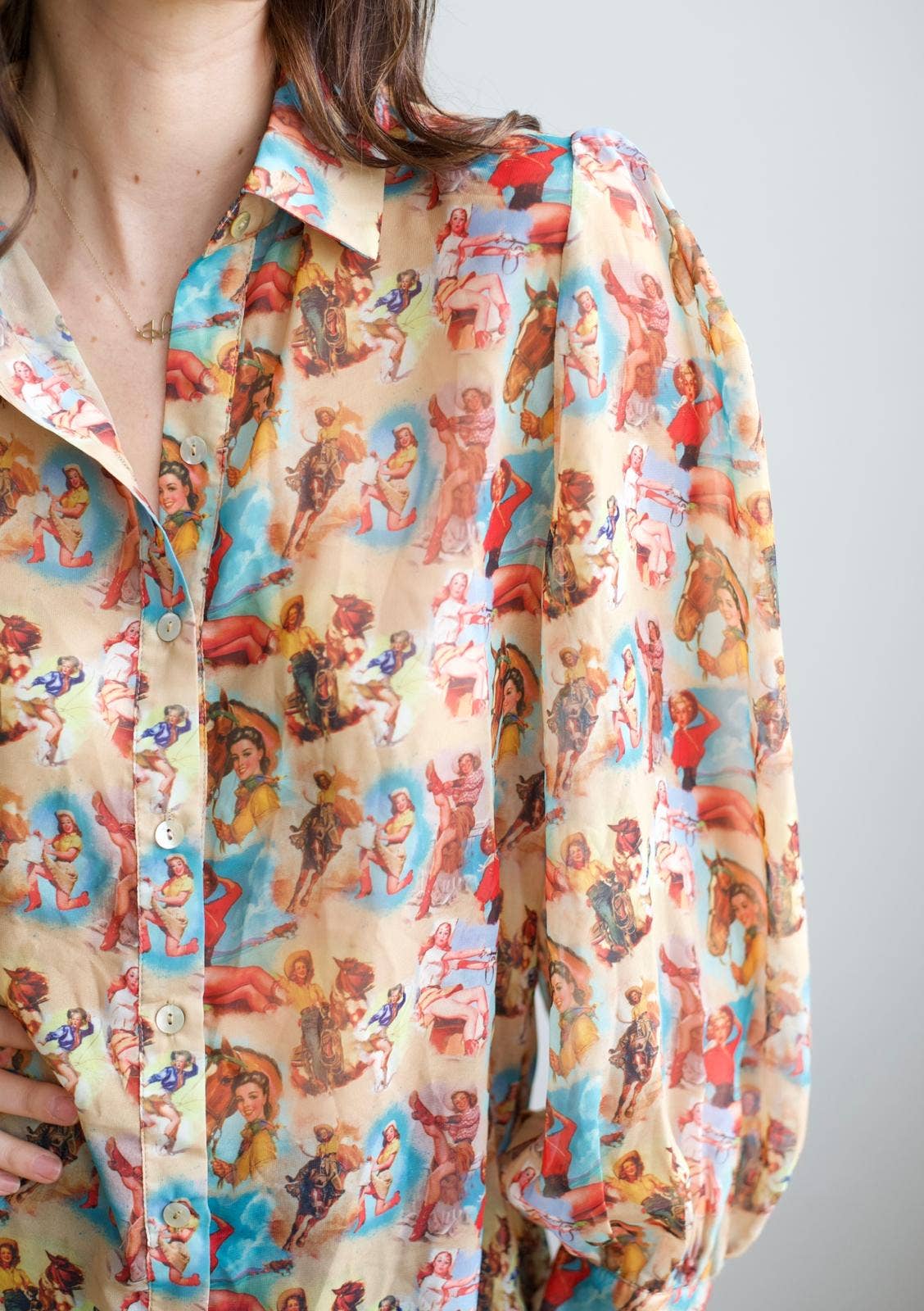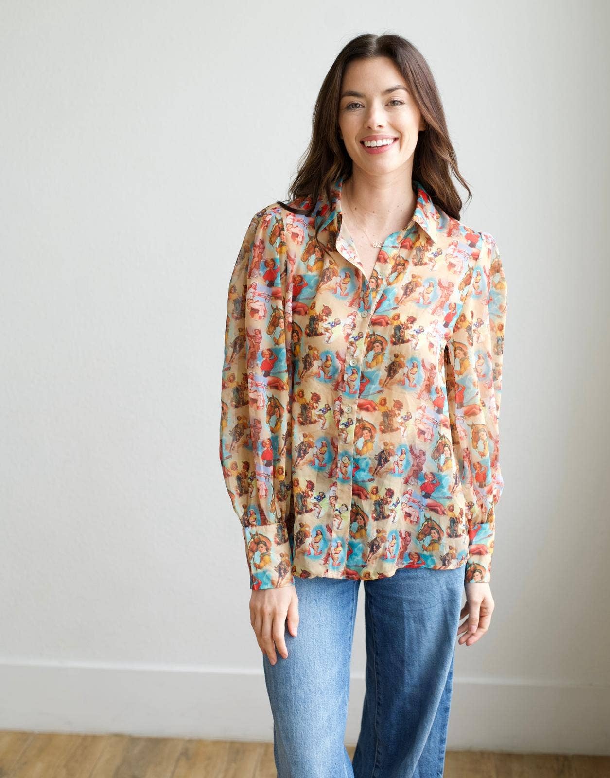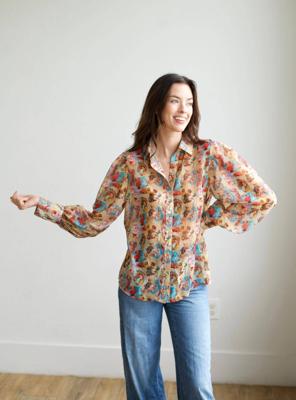 Meet the blouse that’s flowwesy, flirty, and full of retro rodeo energy. The Vintage Cowgirl Blouse is giving “wild west meets wanderlust” with its airy sheer chiffon, relaxed silhouette, and billowy sleeves made for dramatic exits. She buttons all the way down, layers like a dream, and brings that effortless cowgirl cool whether you're headed to a concert, a canyon, or just a coffee run.