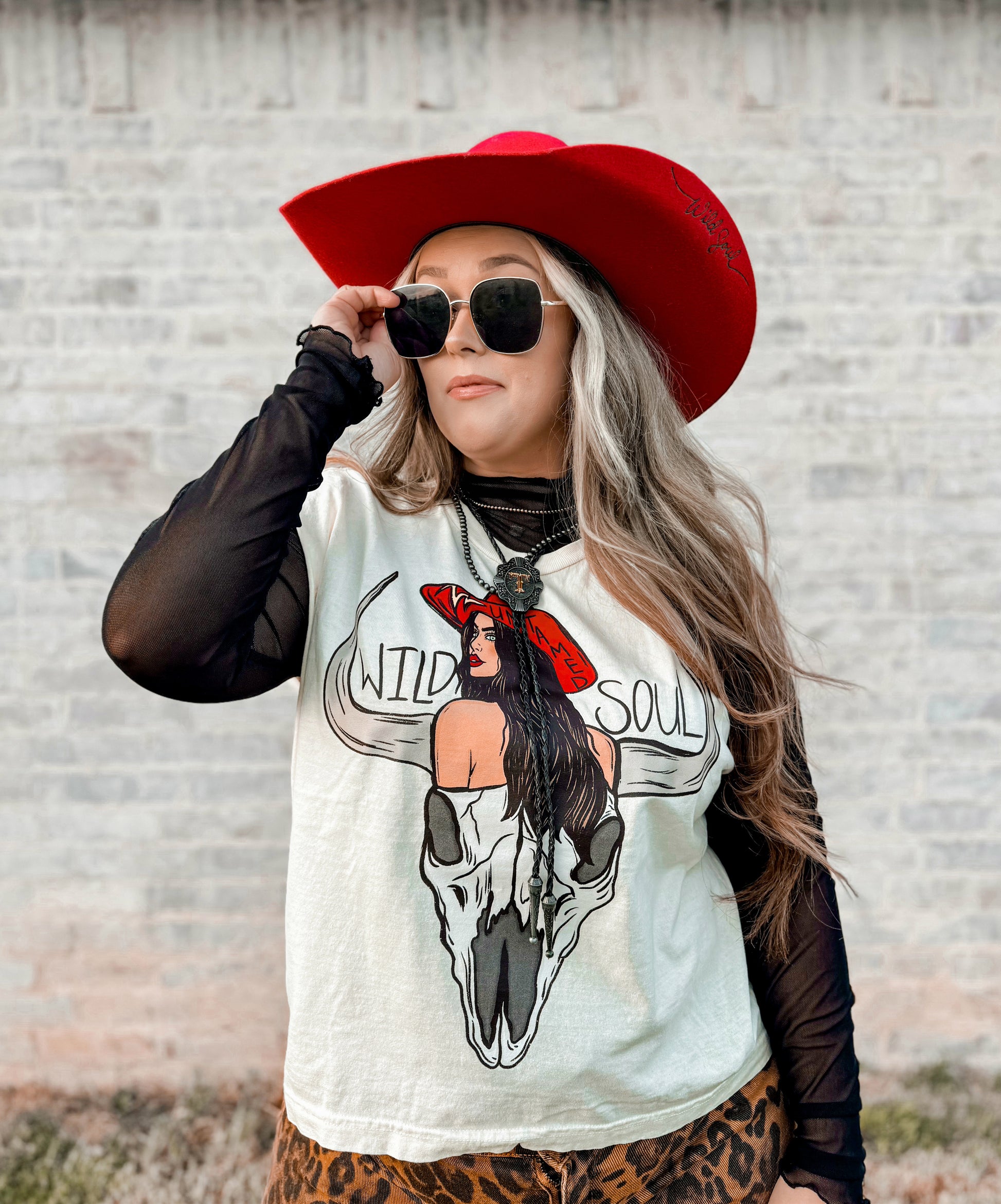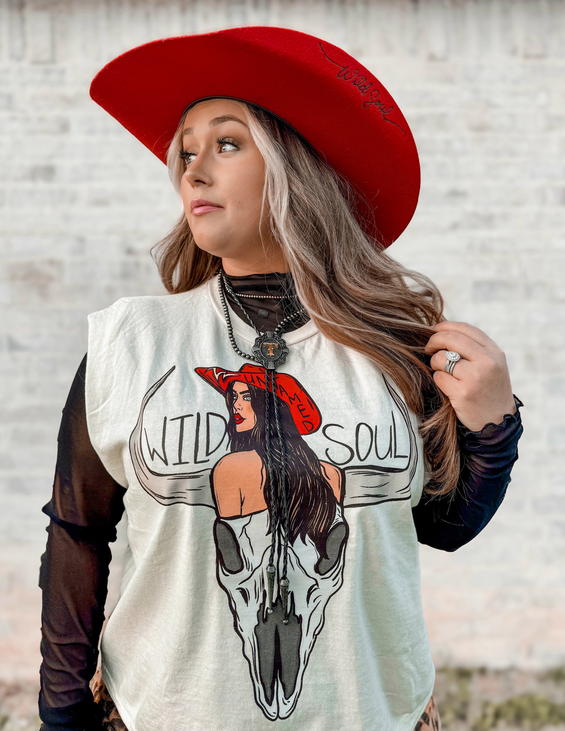 Let your wild side lead the way in The Wild Soul Cropped Tee—a bold cream graphic tee featuring a cowgirl design that speaks straight to your untamed spirit. Sleeveless, oversized, and effortlessly cool, this tee was originally featured in a past collab with OKC Trendsetter and still brings all the rebel energy.